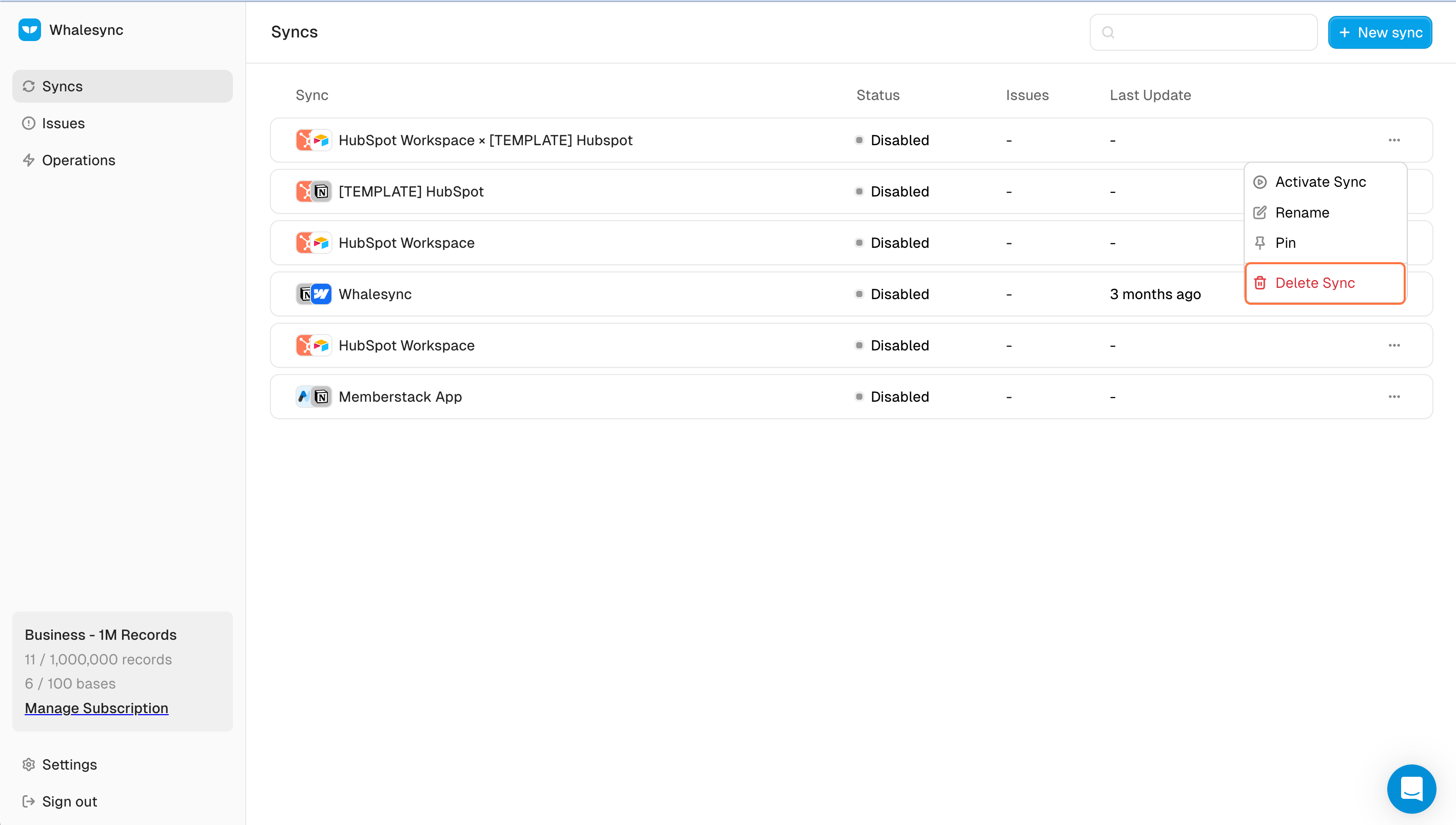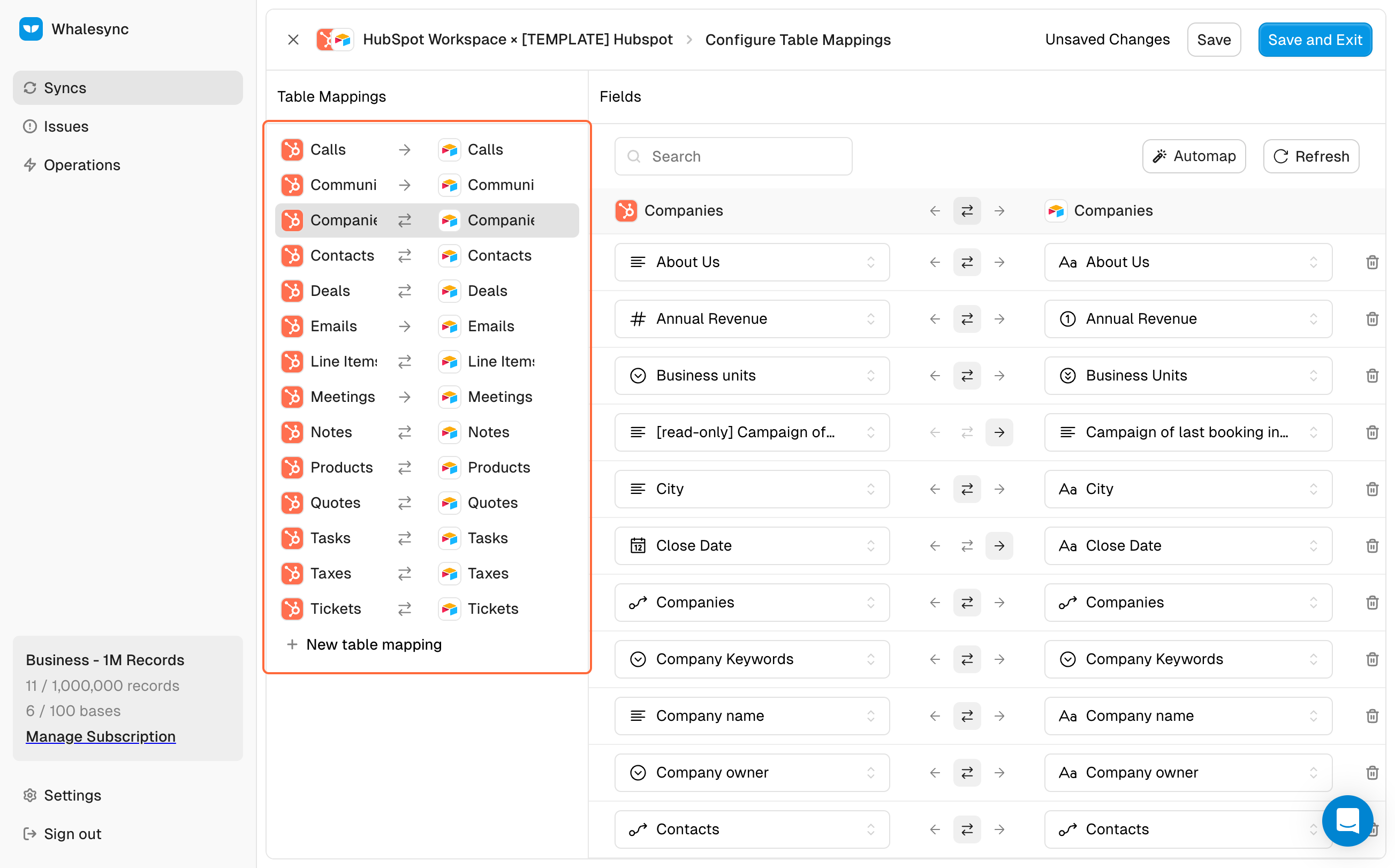 Whalesync integrates HubSpot with other apps like Airtable and Salesforce. This enables you to do things like: