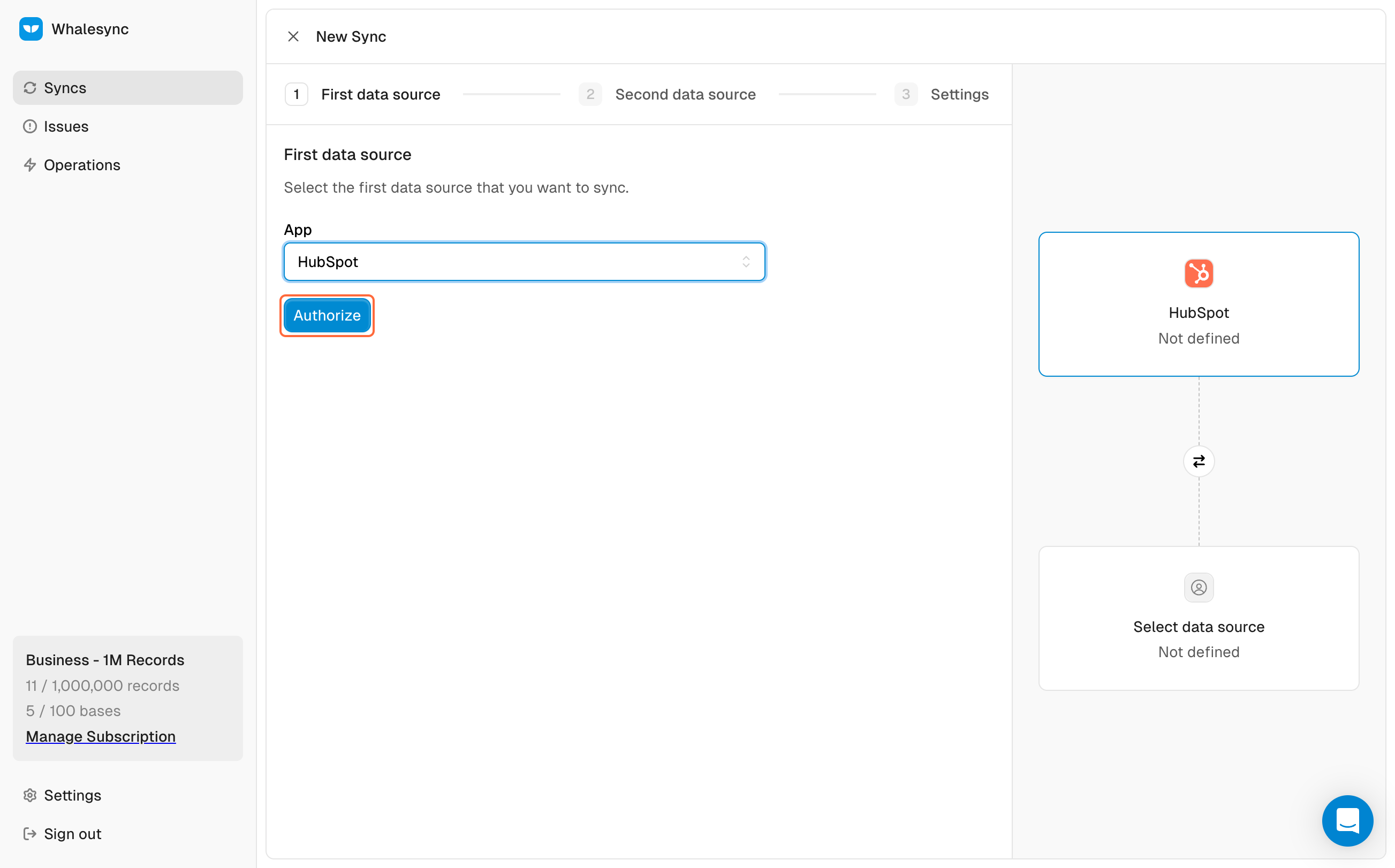 2. Choose HubSpot and click 'Authorize'