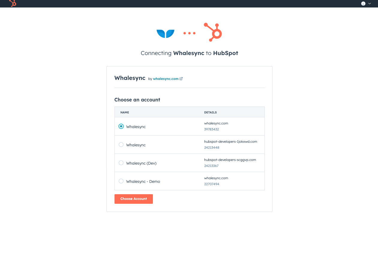 3. Choose your HubSpot account